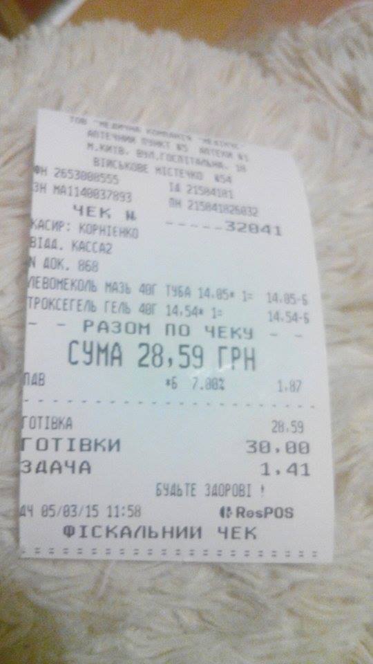 Дякумо пані Богдані за кошти, як були витрачені на поповнення рахунків та ліки (629.05 грн).