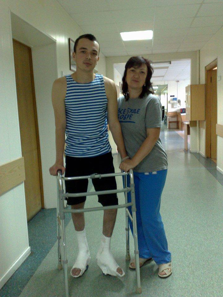 ОНОВЛЕННЯ: МАКСИМУ ЗУБОВУ 24 роки. Його було поранено в червні біля с.Семенівка. Лікарі Київського військового шпиталю збирали ноги зі шматочків. Чотири довгі місяці хлопець пролежав у гіпсі. Наразі Максим проходить реабілітацію у Вінниці. Атрофовані м'язи потроху відновлюються. Та ходити хлопець не може до сих пір: суглоб лівої ноги потребує серйозного хірургічного втручання. Можливо, лікуватися доведеться в Німеччині.