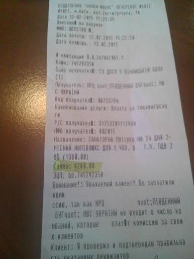Колектив родинного клубу та пані Яна оплатили пораненому бійцю реабілітацію вартістю 8 365 гривень (разом з комісією).