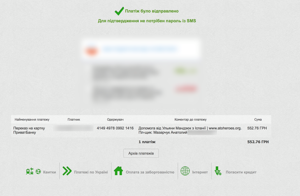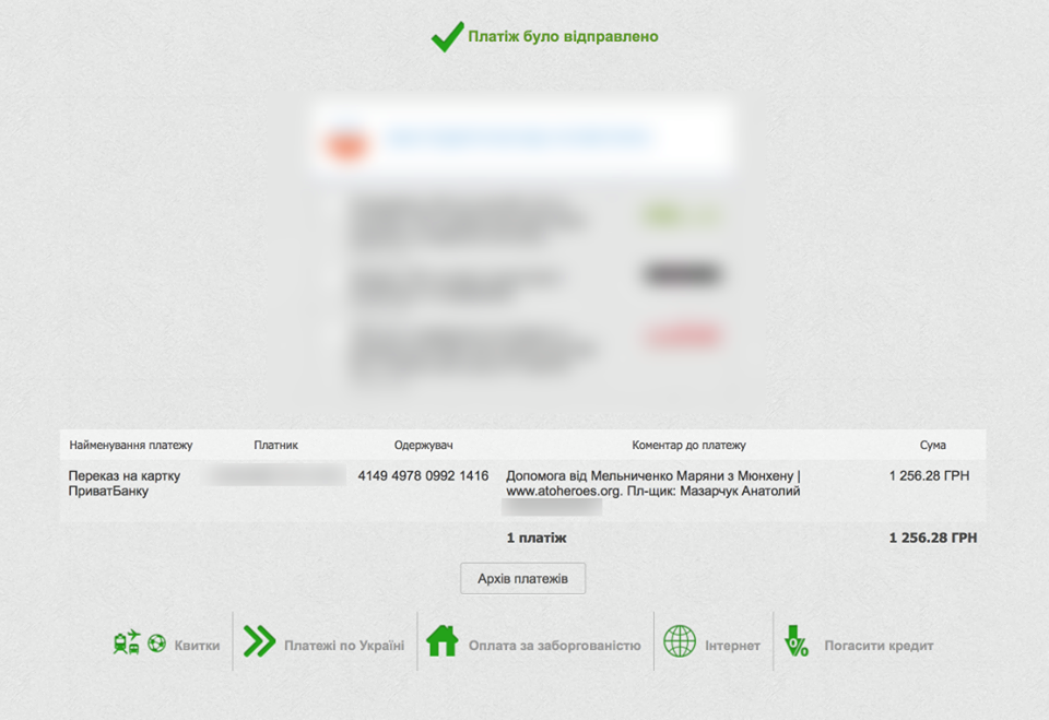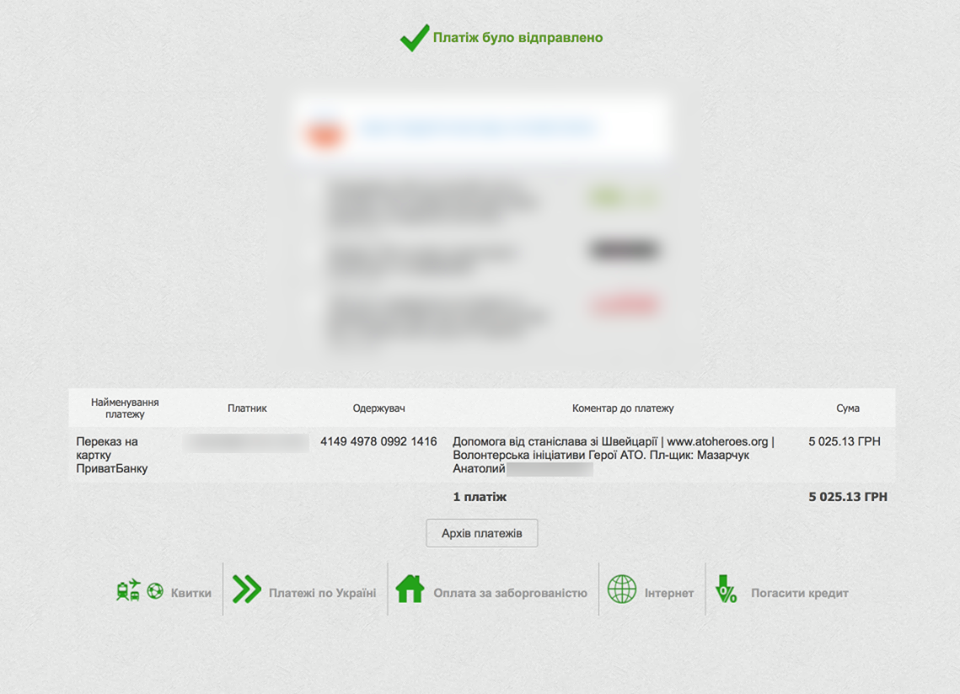 Картка Приват: Івахнюк Олег Петрович :4149 4978 0992 1416